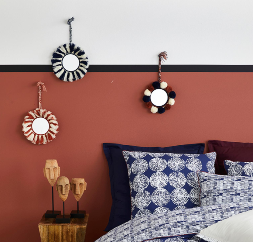 Cette saison, le bleu n’a jamais été aussi chaleureux. Accompagné de blanc cassé, rehaussé de rouges cuits. Habitée par un esprit artisanal, la tendance Bleu Totem inspire le voyage et signe un retour à des matières brutes : des bois sculptés, de la terre cuite, du lin, des toiles épaisses… Quand l’ailleurs s’installe ici, c’est aussi accueillant que réconfortant.